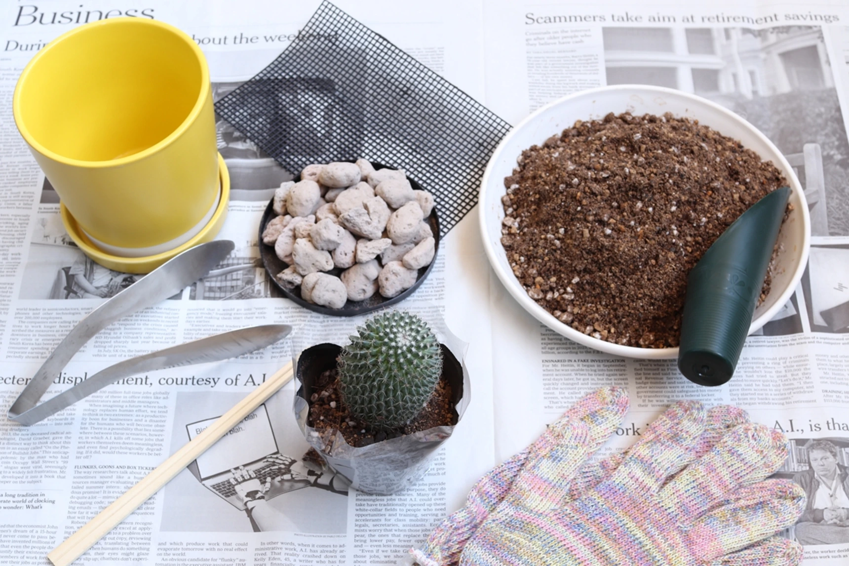 サボテンを植え付けるために必要な道具は園芸店のほか、100円ショップなどでも気軽に揃えられます。ガーデニング初心者の人は、手頃な価格のもので用意してみるのもいいでしょう。