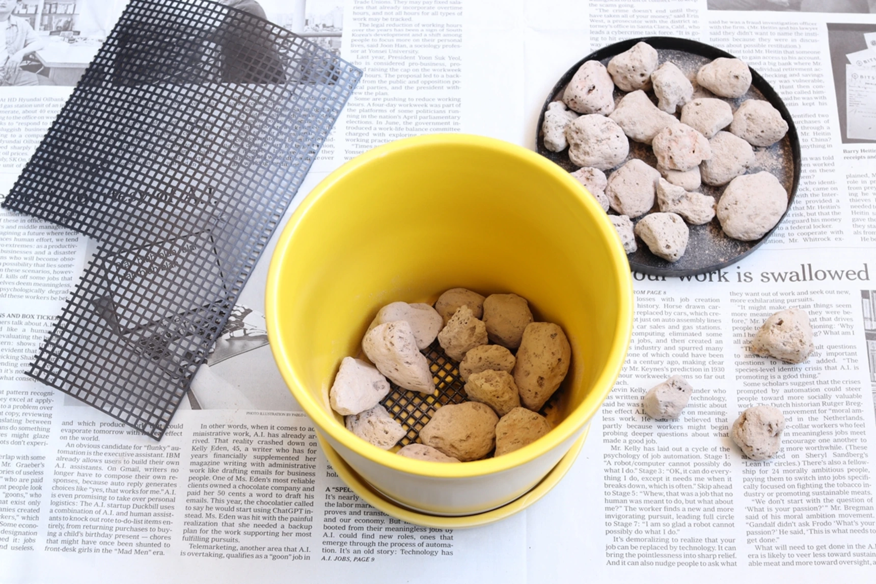 【2】鉢底ネットと鉢底石を入れる
