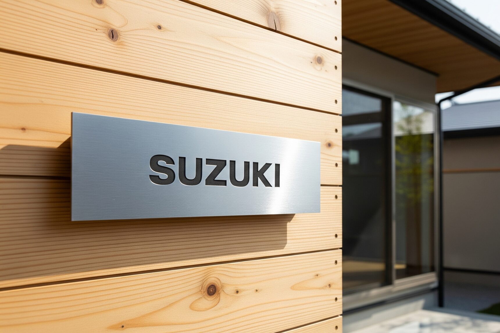 木材の表札は、自然素材ならではの温かみと経年変化を楽しめる点が魅力です。ひとつひとつ異なる木目を持つため、天然石と同様に唯一無二の表札を作ることができます。