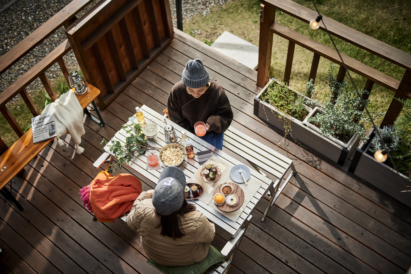 お友達を呼んで、お庭でパーティー。午後のひとときには、デッキでおやつをつまみながら、ほっとひと息。夜風に当たりながら、ベランダで過ごす静かな時間。